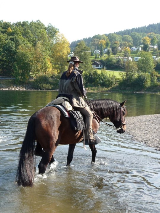 Ganz, ganz langsam sind wir die Reiterei wieder angegangen. Ohne Sattel, dafür aber (gottseidank) schnell mit Gurt. Ich habe meinen Reitstil komplett umgestellt. Völligst Seitengang-traumatisiert waren wir erst mal sehr lange nur geradeaus unterwegs. Wir trainierten wieder Geländekilometer, sind klettern gegangen. Schuhe brauchte er wieder und einen passenden Sattel. Das alles lief natürlich nicht ohne Unterbrechungen ab. Die Osteopathin legte uns deshalb immer wieder die Seitengänge nahe… Mittlerweile haben wir uns auch daran wieder getraut – und haben jetzt Spass dabei!