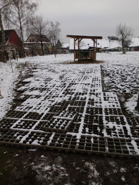 Nach fast einem halben Jahr trockenem Boden fing die Regenzeit an. Es wurde quasi von heute auf morgen matschig – Gummistiefelwetter. Perfekte Bedingungen für die nächste Phase Bodenbefestigung. Zum einen ist der Boden durch die Nässe gut verformbar. Zum anderen bin ich dann hochmotiviert:
