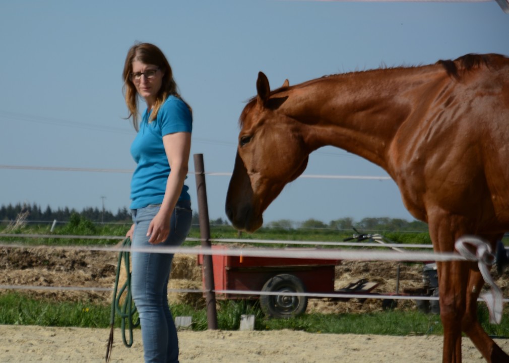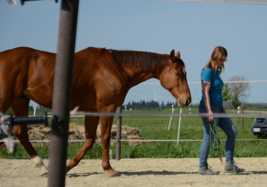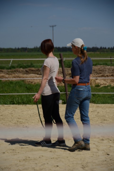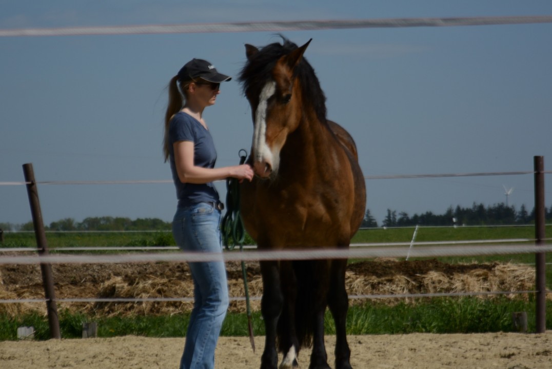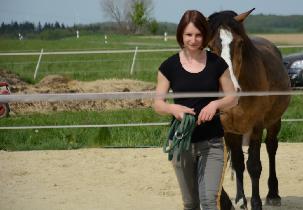 Du arbeitest sehr ruhig, geduldig und einfühlsam mit jedem Pferd und Menschen. Ich finde es super, dass es kein „falsch“ oder „Fehler“ gibt. Das Arbeiten am Pferd wird nicht aufgrund des Zeitplans plötzlich unterbrochen; jeder bekommt genug Zeit um mit seinem Pfed zu arbeiten. Die Pferde bekommen genug Ruhephasen. Dieses Band zum Pferd zu spüren, wenn es Dir sein Vertrauen schenkt, ist UNBEZAHLBAR! Gut ist, erstmal am Schulpferd zu arbeiten. Ich habe innerhalb von so kurzer Zeit meine Pferde von einer ganz anderen Seite kennengelernt. Die Energie runter zu fahren, bei der Arbeit mit den Pferden, wirkt sich positiv auf mein eigenes Wohlbefinden aus.