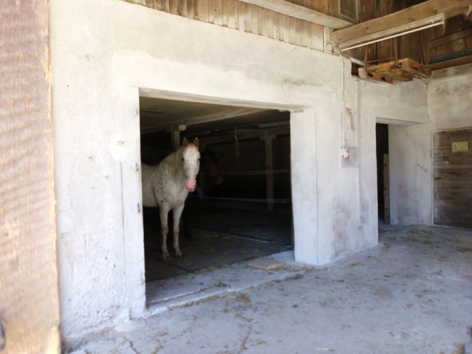 Die Heunetze hängen das erste Mal drinnen. Wenn Pferde nicht mehr raus wollen, dann ist der zur Verfügung stehende Platz sehr beengt. In beiden Stalltrakten hingen Heunetze. Die 4 zogen es aber vor zusammen in einem Stall zu stehen…: