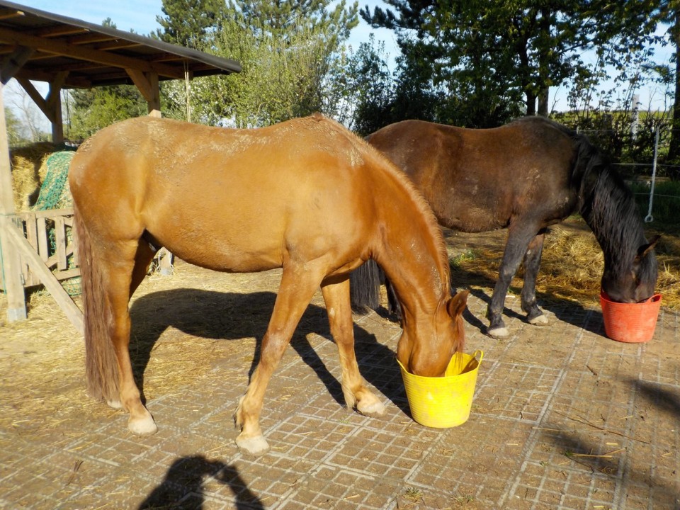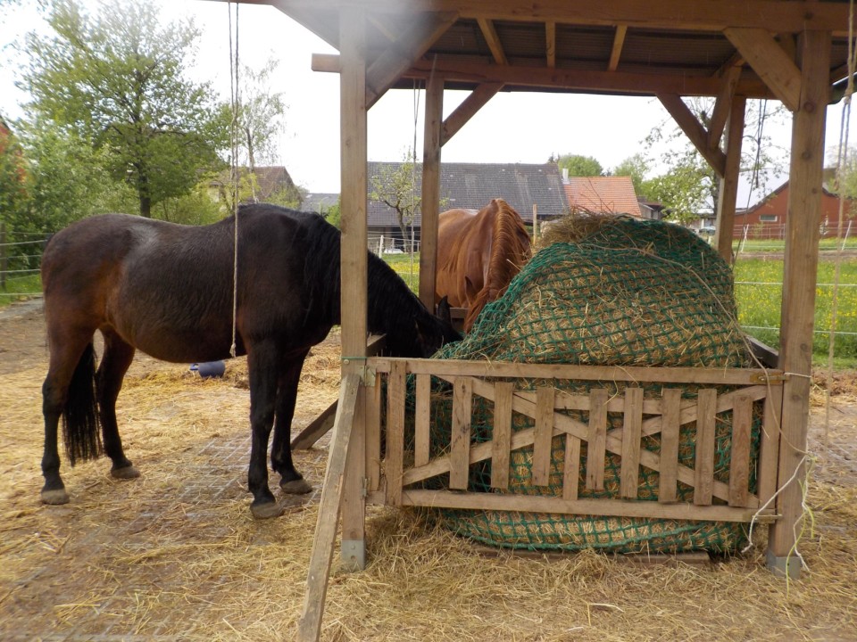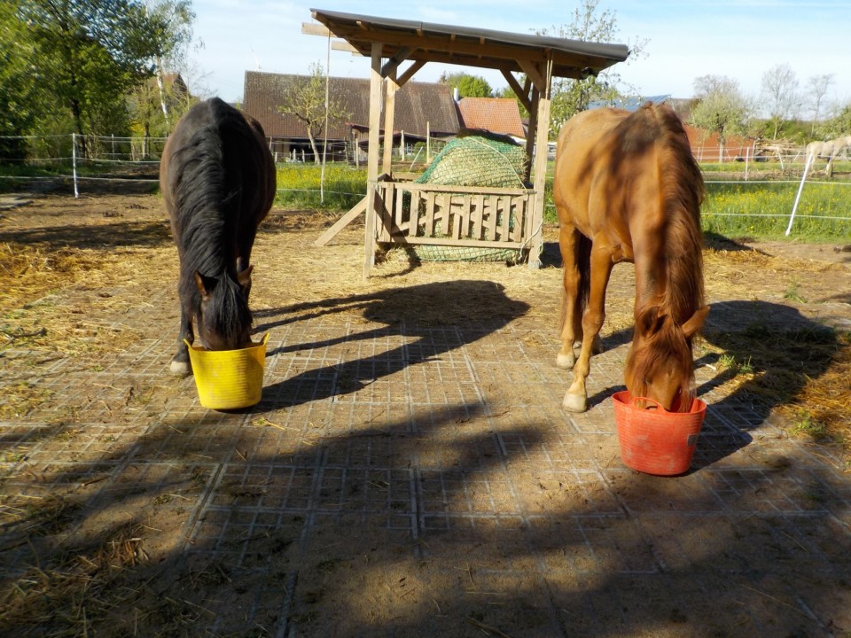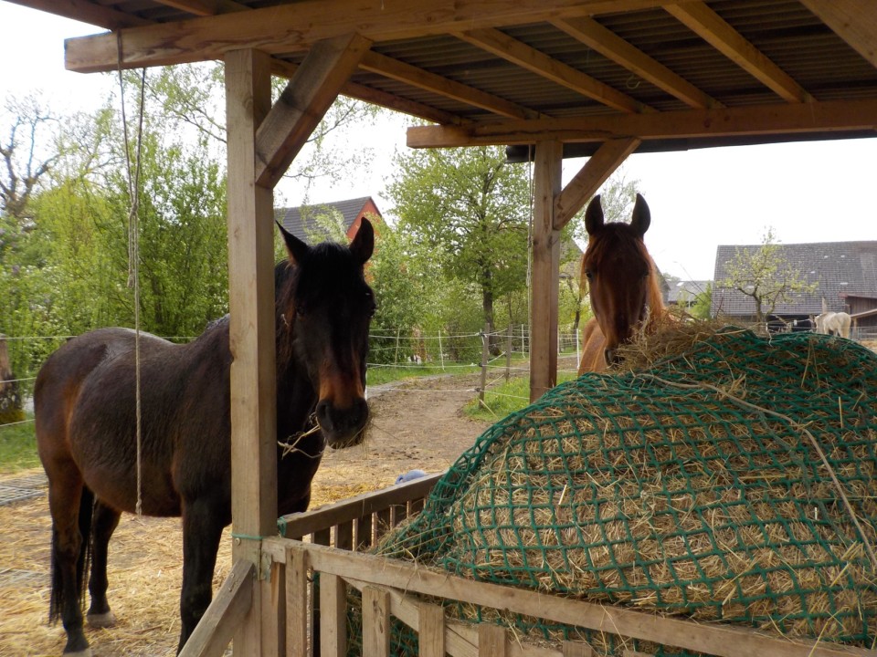Nach dem missglückten Versuch Santo mit Tio zu vergesellschaften, blieb nur noch Niňo übrig als potentielles Beistellpferd. Das hat auch gut geklappt. Die beiden laufen nun seit ca. 5 Wochen zusammen und verstehen sich sehr gut.